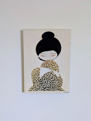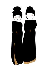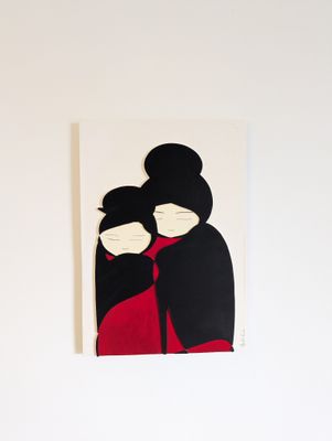 Les corps stylisés, leurs gestes discrets et leurs postures douces parlent d'amour et de transmission.
