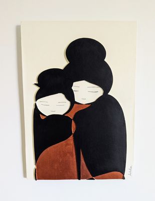 Paisibles, presque solennelles, ces figures incarnent les différents âges et moments de partage humain. Elles explorent les liens invisibles qui unissent les êtres.