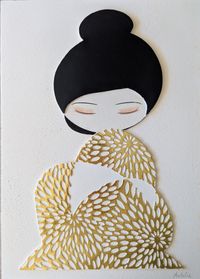 Les corps stylisés, leurs gestes discrets et leurs postures douces parlent d'amour et de transmission.