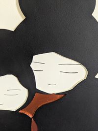 Paisibles, presque solennelles, ces figures incarnent les différents âges et moments de partage humain. Elles explorent les liens invisibles qui unissent les êtres.